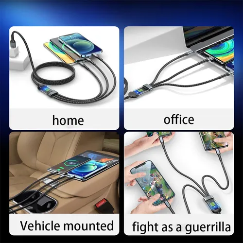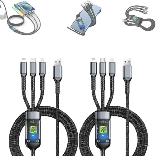 3 in 1 4FT 18W Charger Cable Fast Charge Thick Nylon Braided Charging Cords with Type C,Micro USB iOS (USB-CHRG-A-3Out 2)
