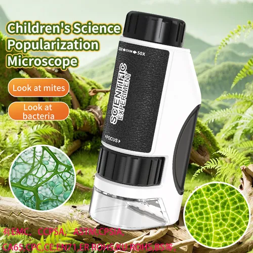 RIIPOO Pocket Microscope, Portable Handheld Mini Microscope Toy, Microscope with LED Light 60X-120X, Holiday Christmas Birthday Party Gift